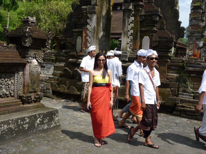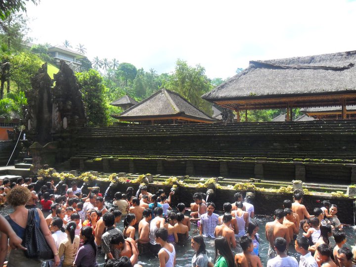 In Tampak Siring Village, you can find Tirta Empul, a holy spring water temple. That day happened to be a Saraswati festival in honor to the Balinese Hindu goddess of knowledge, music and the arts. Balinese bathe at the holy spring in a belief that it purifies the mind and body. Visitors are required to wear sarongs and they gave me a red one :)