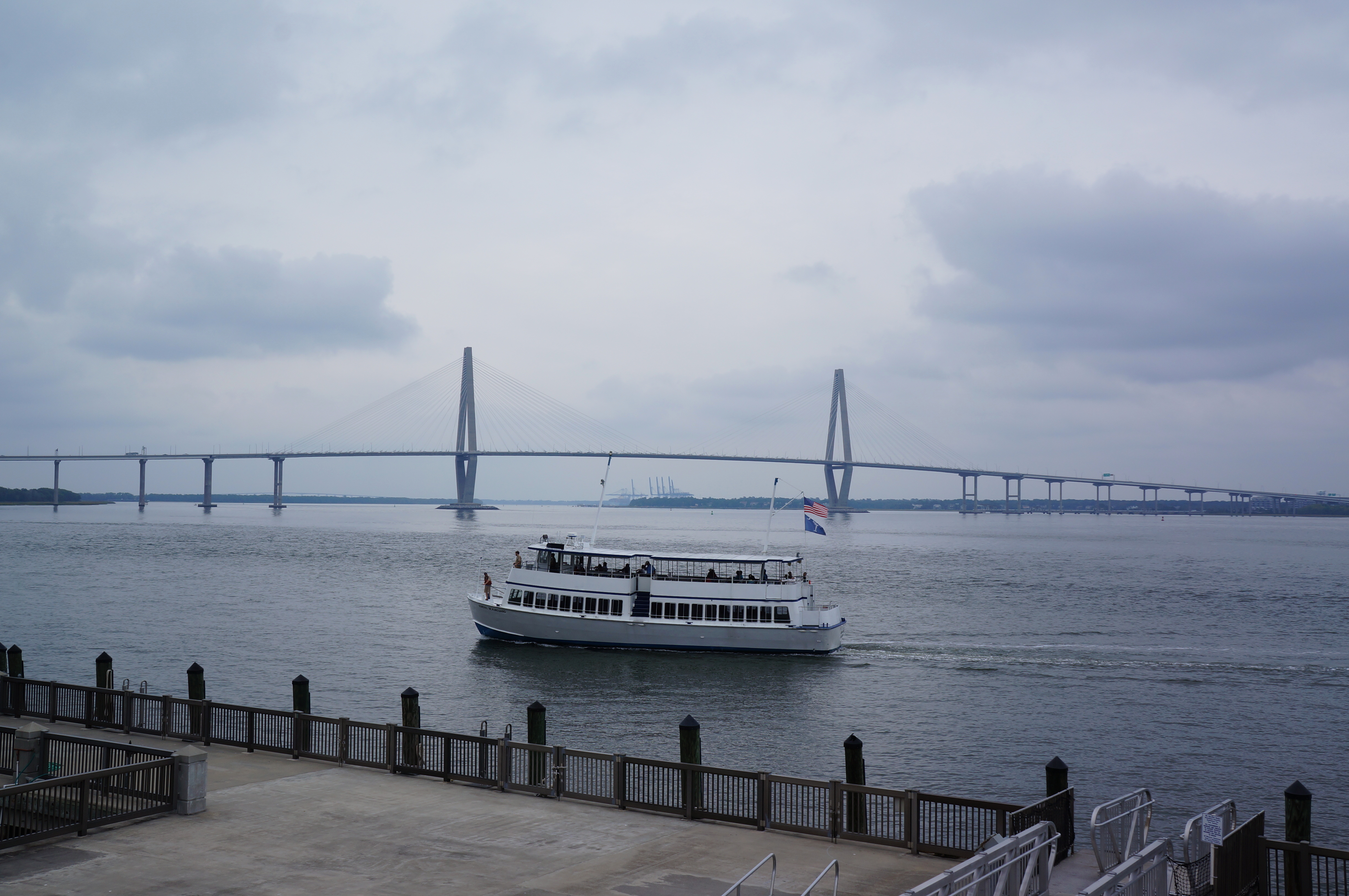 Closer view of Arthur Ravenel Jr. Bridge, also known as the New Cooper River Bridge, aboard the The General Beauregard Harbor Cruise