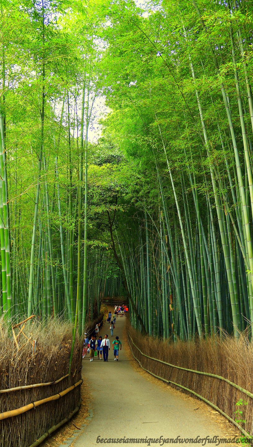 After a pleasant trek along the Hozu River and right at the further end of Tenryū-ji Temple is the Sagano Bamboo Forest that seems mystical in thousand ways. It is roughly a 500-meter pathway of bamboo plants that can be enjoyed in a 15-minute walk at the least. Hubby and I of course expected the stroll to be quiet, calm and serene which turned out to be otherwise because of the tourists who flock to this spot, each hoping to get a glimpse of the beautiful Arashiyama district in Kyoto, Japan. The trick is simply to pause and wait for everyone else to go ahead and watch as the bamboo leaves dance to the songs of the wind. Remember patience being a virtue.
