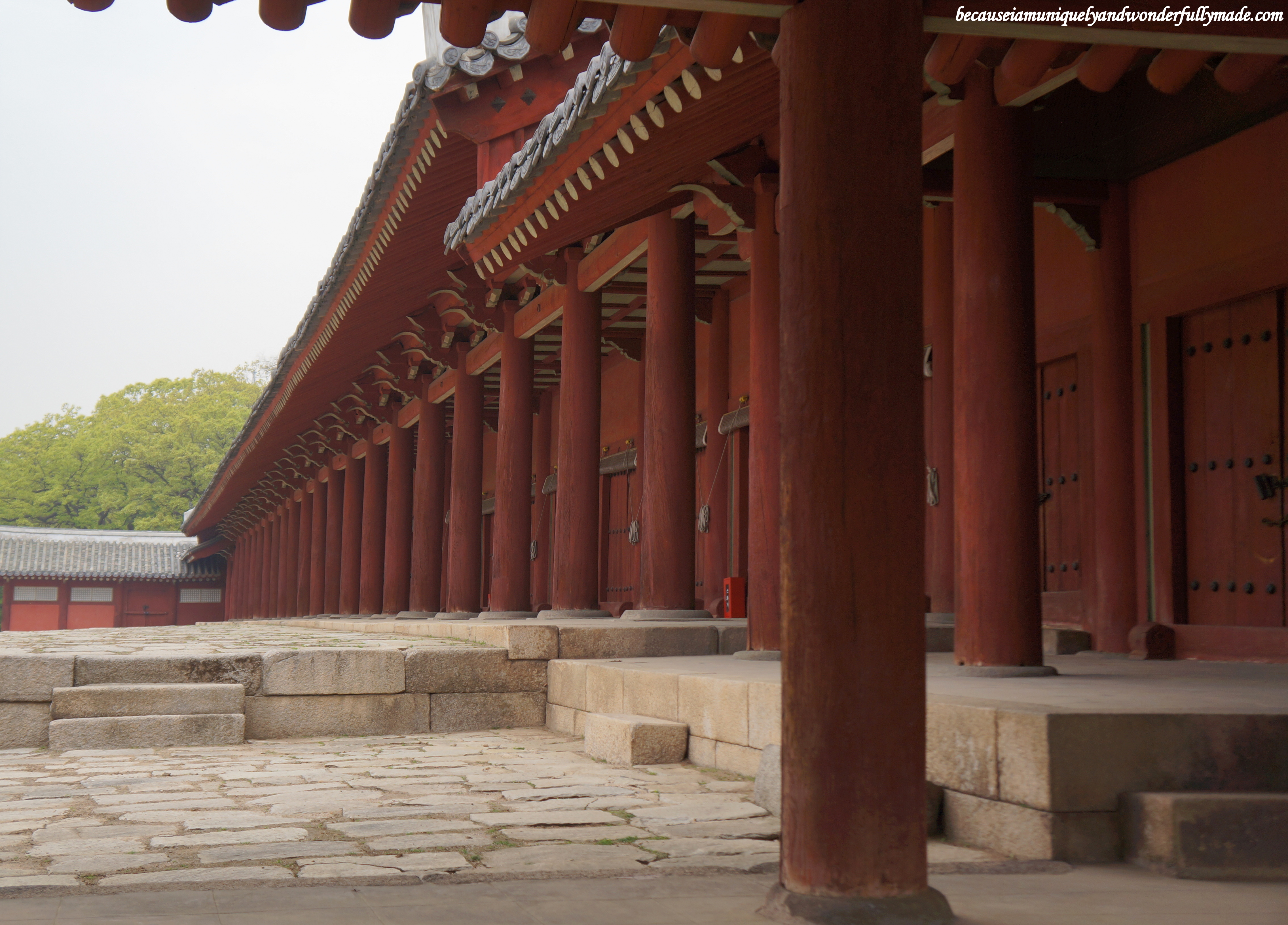 The highlight of the shrine is the hall where the ceremonies were held. The main shrine, Jeongjeon, has 49 royal spirit tables and 19 different windowless rooms, all honoring 19 different Joseon dynasty kings. This was constructed in 1395. The giant pillars really stood out painted in red, and the wide and spacious courtyard also gave an additional character to the shrine.