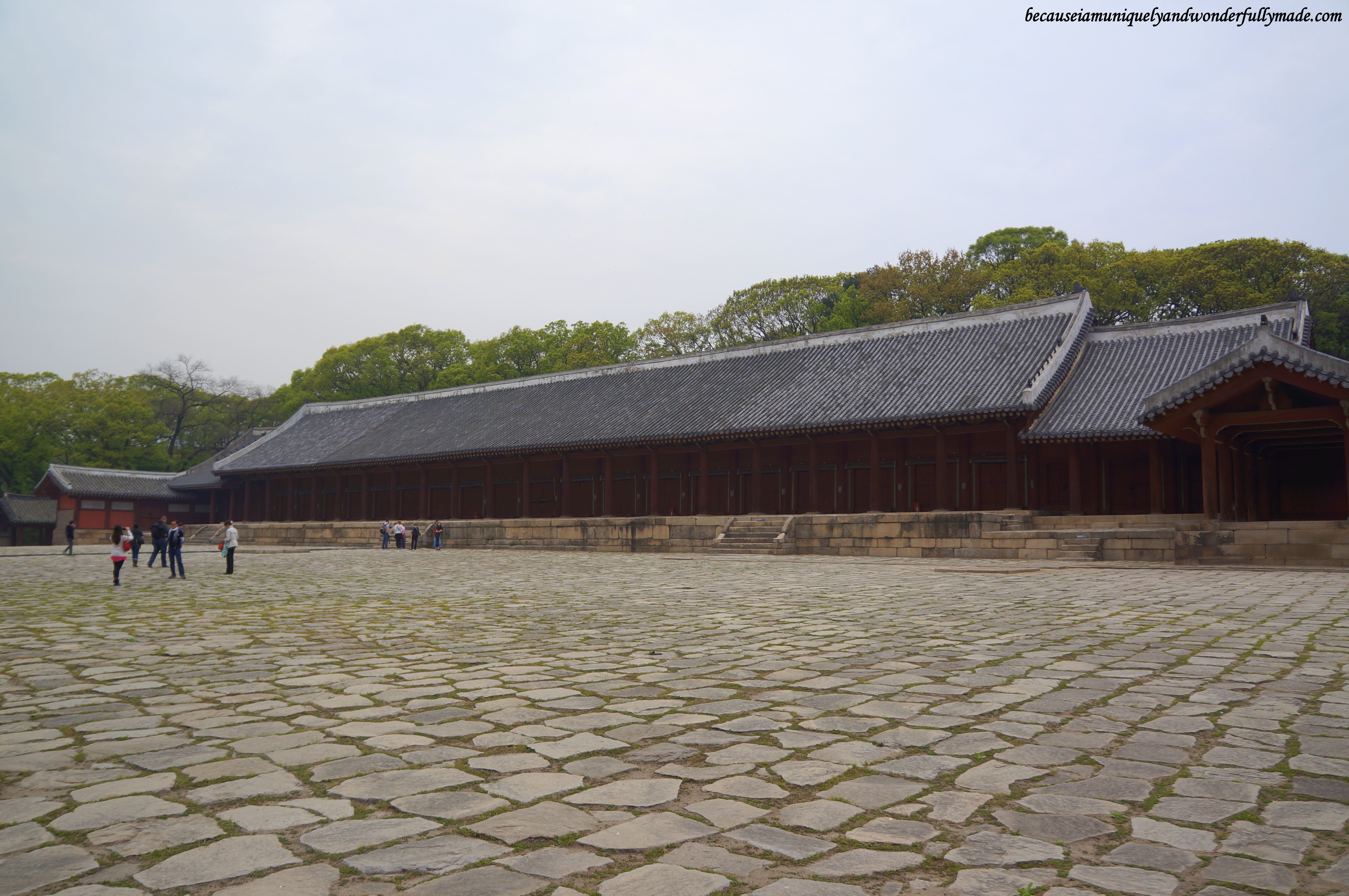The colors of red and green are used at Jongmyo shrine to symbolize solemnity, piety, and sublimity because bright colors would not allow the spirits of the kings and queens to rest in peace. The solemnity of the shrine is unlike any other tourist spots we have been to in Seoul. It is very quiet and it reminded me of Fushimi Inari Taisha in Kyoto, only Jongmyo Shrine is a lot less creepier.