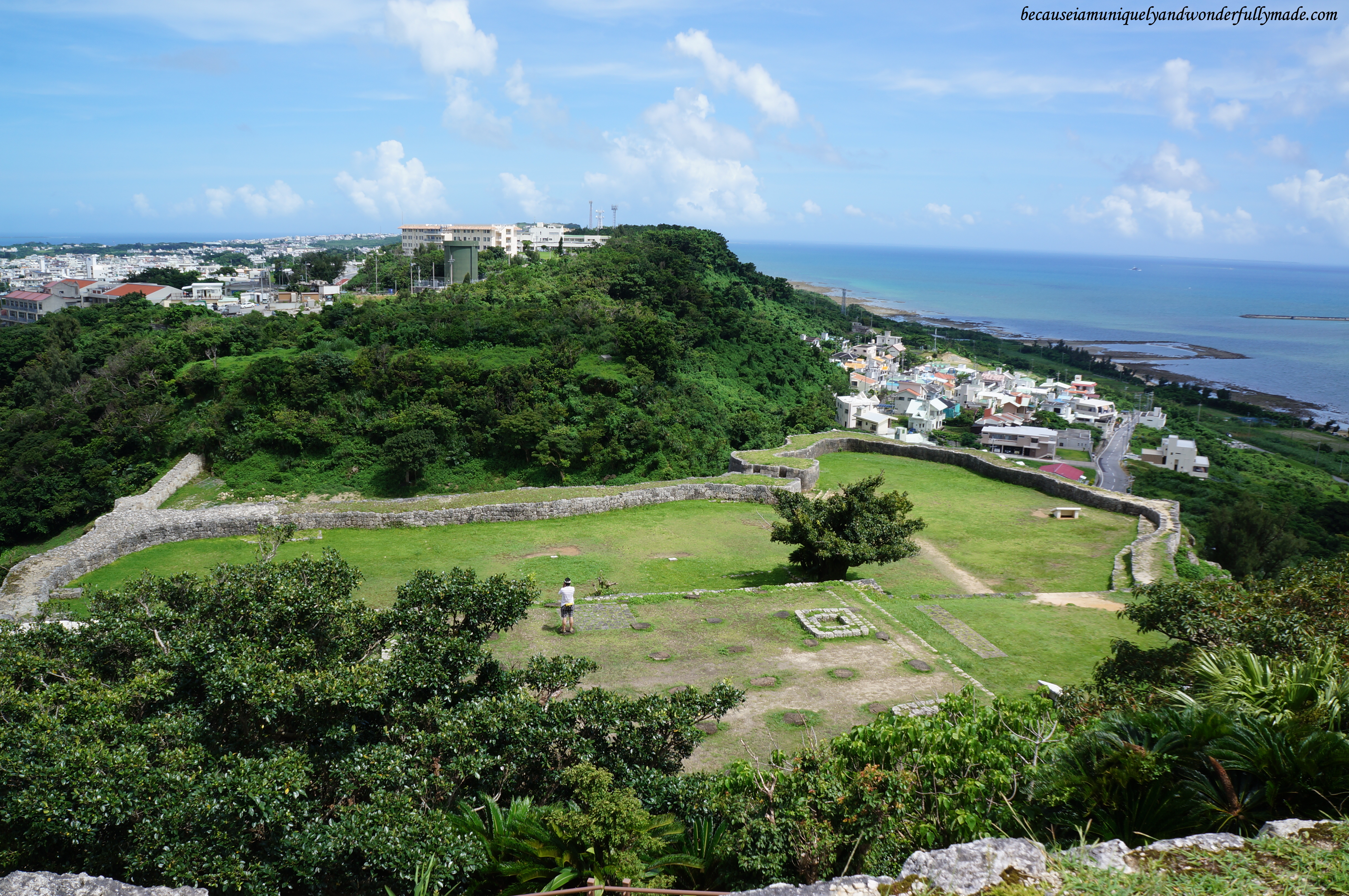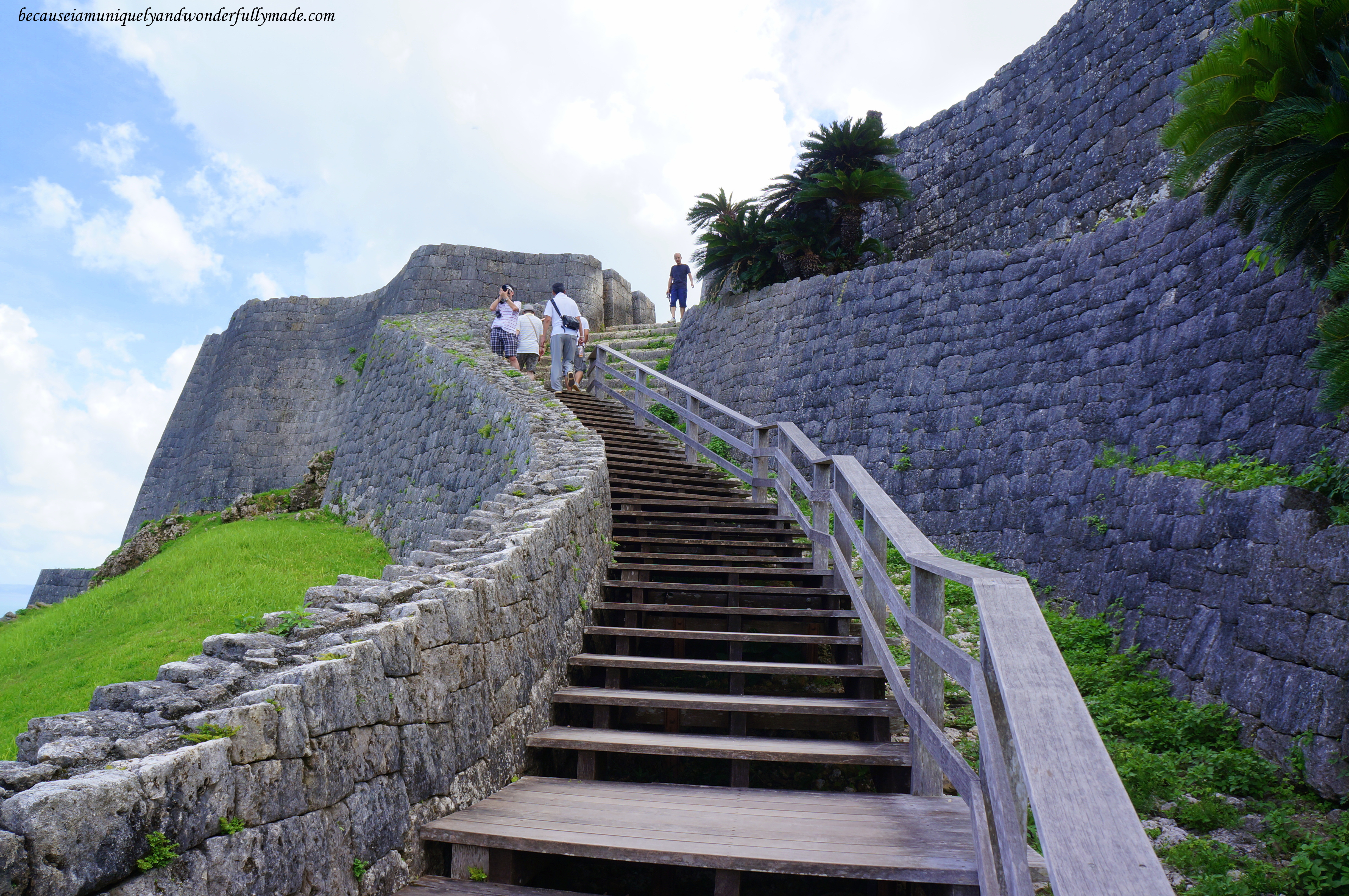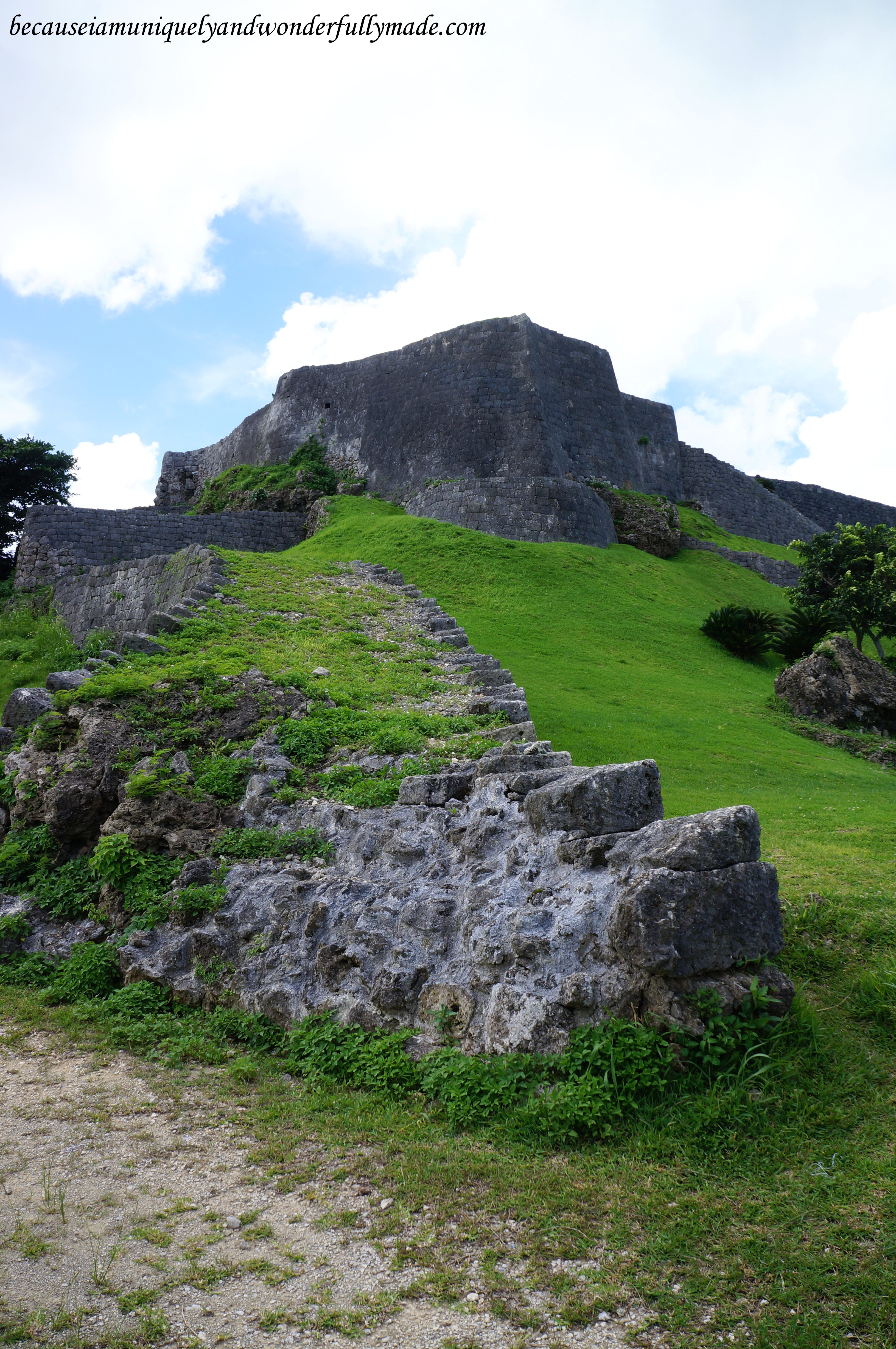 Hubby has sworn that he will not leave the house until summer is over. To those who have been and are in Okinawa, you will know what I mean. This island sizzles in summer! But weekends are meant to be outdoors so we braved the sun and drove to Katsuren Castle located on the east side of the island. It is perhaps one of the most beautiful backyards we have in Okinawa and probably my new favorite. A gusuku (fortresses of regional chieftains when Okinawa was an independent Ryukyu Kingdom) nestled on top of a hill in Uruma City, it is one of Okinawa’s proud UNESCO World Heritage Sites designated in 2000. It is also one of the nine Gusuku Sites and Related Properties of the Kingdom of Ryukyu and a Designated Historical Monument (史跡Shiseki) by the Japanese Agency for Cultural Affairs in 1972.