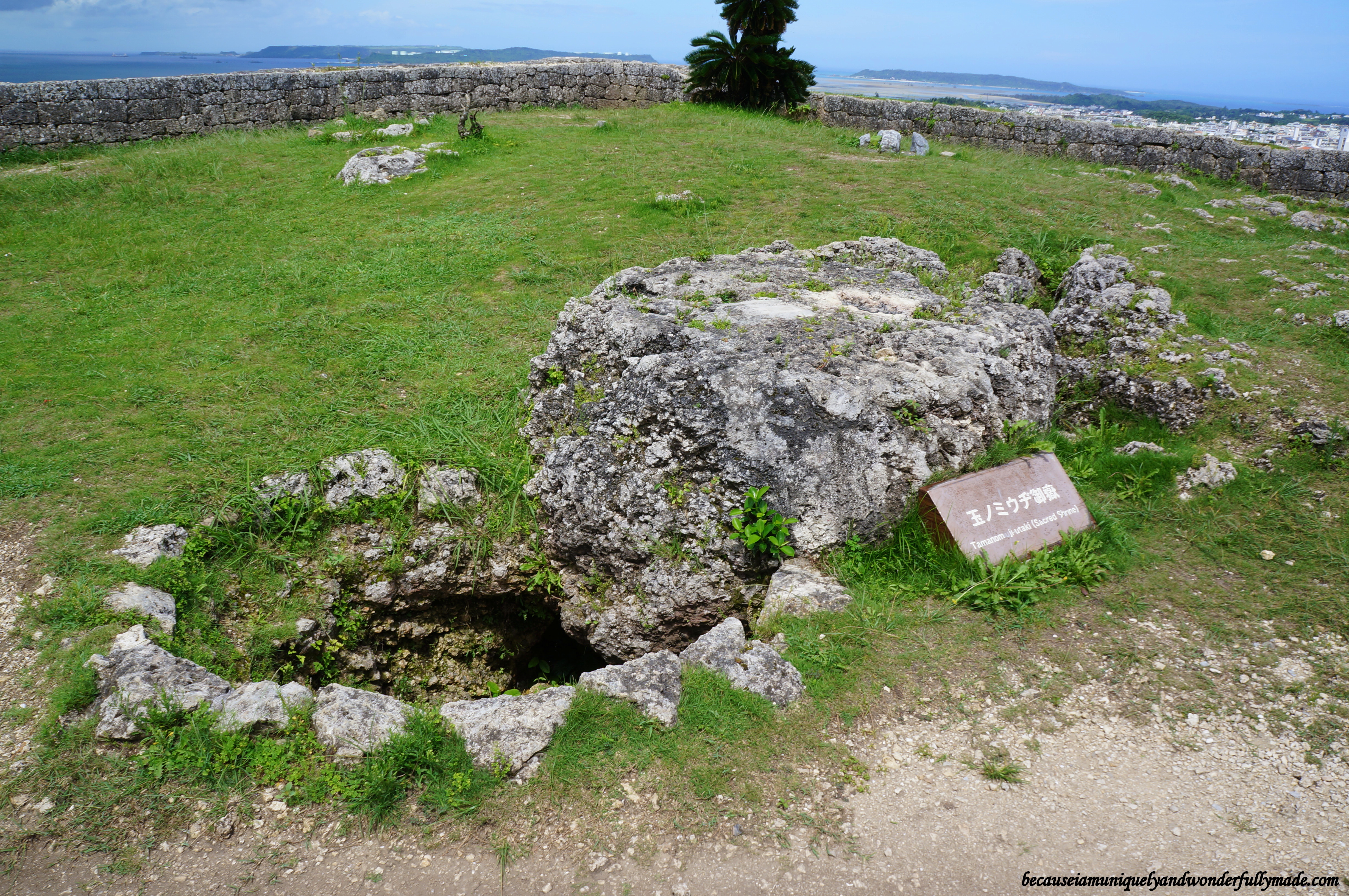 The altar of Umichimun or God of Fire at Katsuren Castle 勝連城 (Katsuren-gusuku) in Uruma City, Okinawa 沖縄県, Japan. This is believed to be the castle’s kitchen.The Ushinujigama (gama means cave) Katsuren Castle 勝連城 (Katsuren-gusuku) in Uruma City, Okinawa 沖縄県, Japan. This was used as a refuge during war and natural disasters.The Tamanomiuji-utaki at Katsuren Castle 勝連城 (Katsuren-gusuku) in Uruma City, Okinawa 沖縄県, Japan. This stone protects the castle as a sacred shrine. This is also a place of worship dedicated to a god who protects the Aji or the regional lord of Okinawa. This is believed to lead to Ushinujigama.