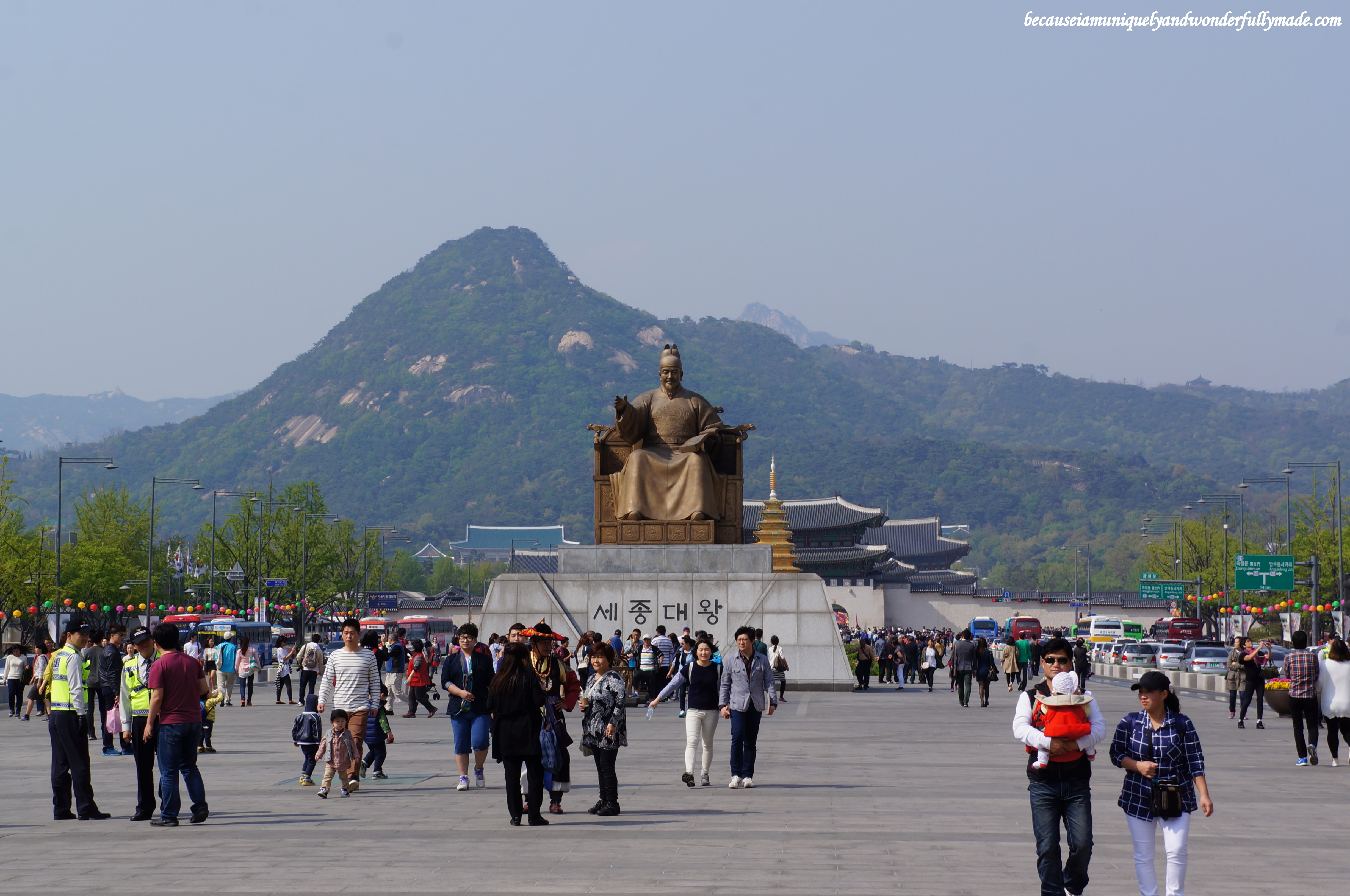 TRAVELLER’S NOTE : The easiest access to Gwanghwamun Square is a stop at Gwanghwamun Station on Seoul Subway Line 5: Exit 9 – Haechi Madang, an underground walkway that connects the station to the Plaza. The square is also more beautiful and more charming at night :)