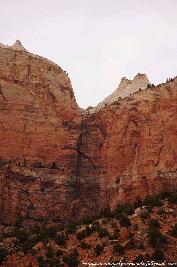 One of the most popular hiking and canyoneering trails at Zion National Park is the Narrows. But due to possible danger and unpredictable flash floods, and the winter cold (early December 2015), we opted to settle with the Riverside Walk which is known as The Gateway to the Narrows. We did see few tourists who braved the winter water though, looking all geared up like they were about to go deep sea diving! We definitely stayed out of the water but had we have to, I would certainly gear up an 8mm dry suit too! Haha. The Riverside Walk was only two miles and the view is gorgeous. The ice sheets formed on the wall cliffs along the trail also made it extra interesting.